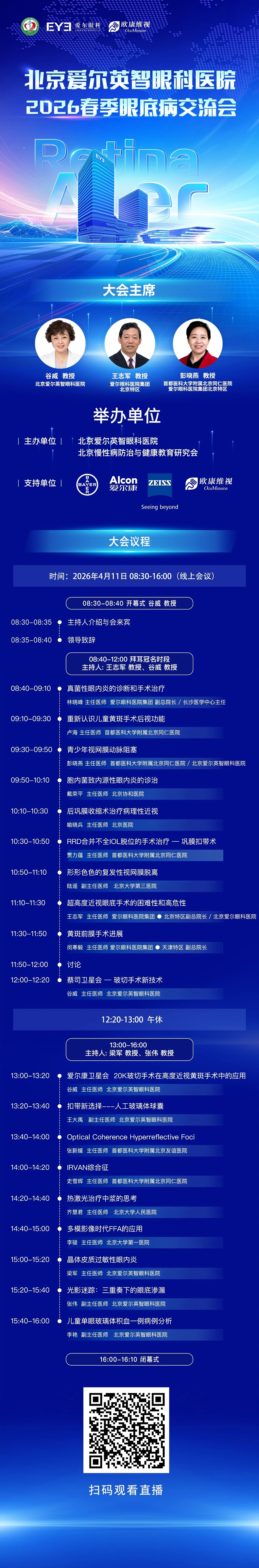 为进一步提升眼底病诊疗水平,推动玻璃体切割术(玻切)新技术与后巩膜加固术的临床应用及规范化发展,同时深化眼底病多学科诊疗协作,北京爱尔英智眼科医院将于2026年...