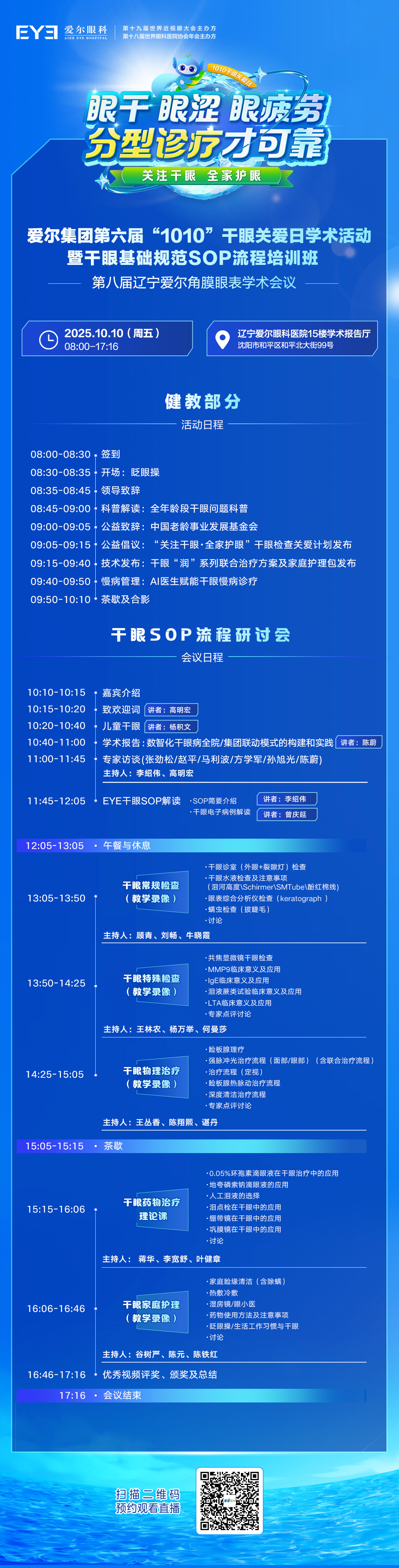 直播预告|我院李绍伟教授、刘畅主任将出席爱尔眼科第六届“1010”干眼关爱日学术活动